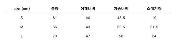 상품의 사이즈는 측정 방법과 위치에 따라 오차가 날 수 있습니다.